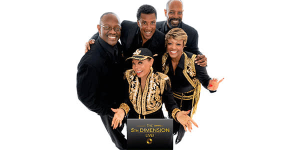 “Classy” is the word used over and over to describe THE 5TH DIMENSION. With over 20 million record sold worldwide, 22 TOP 40 Hits, 5 No. 1 hits and 6 GRAMMY’S, THE LEGENDARY 5th DIMENSION continues to awe sold out audiences with their amazing harmonies, immaculate showmanship, and exciting energy wherever they perform. Their classic songs include: “Up, Up, and Away,””One Less Bell to Answer,” “Last Night I Didn’t Get to Sleep At All,” “Wedding Bell blues,” “Stoned Soul Picnic,” and the iconic “Aquarius/Let the Sun Shine In.”