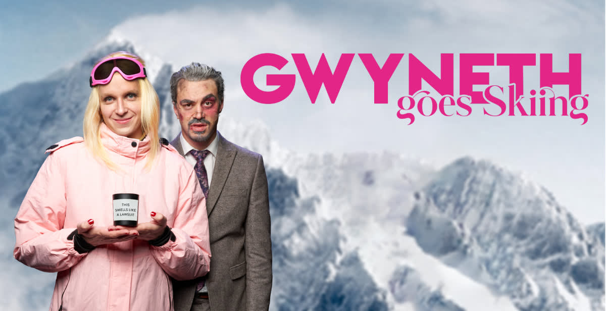 Gwyneth Goes Skiing stars Linus Karp as the Goop-founding, Door-Sliding, Shakespeare-Loving, Hollywood superstar Gwyneth Paltrow, and Joseph Martin as her nemesis, Terry Sanderson, a retired Optometrist from Utah. The performance features a whole lot of fiction and a sprinkling of verbatim lines from court transcripts.